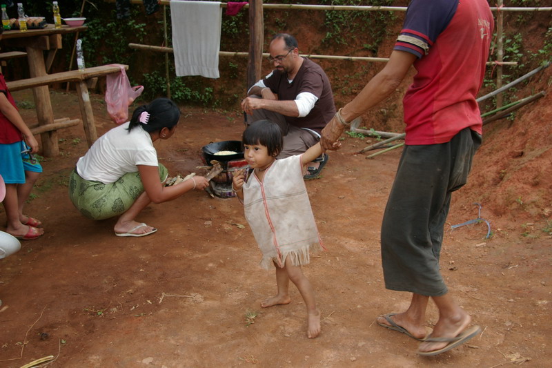 Przedzieralismy sie przez busz 3 dni, noclegi w bambusowych chatach. Tubylcy sa dosc przyjazni, w koncu mamy troche szmalu ze soba ;) na szczescie ciagle jeszcze przypomina to oryginalna wioske a nie wesole miasteczko dla zachodnich turystow (ale niestety chyba za szybko to sie zmienia).