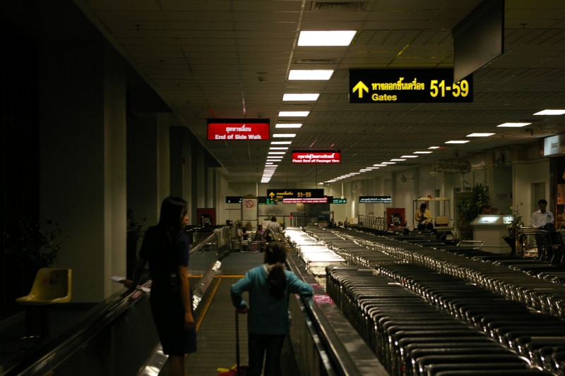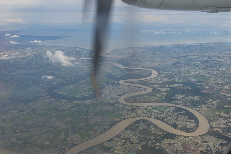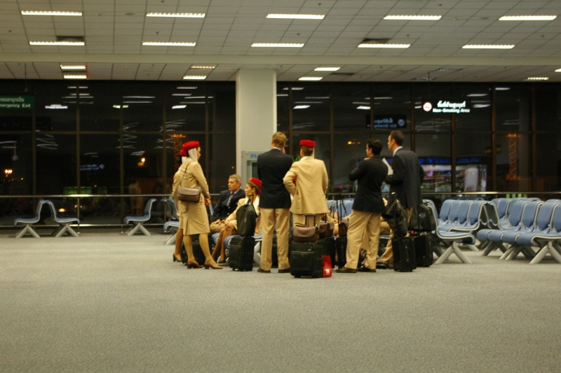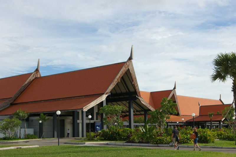 Na poczatku wszystko mialo byc troche inaczej.. uzbrojony w wydruki relacji z podrozy Bangkok-Poipet zamierzalem wsiasc w autobus i udac sie na hardkorowa przeprawe do Kambodzy droga ladowa - tylko dla najtwardszych twardzieli. Bloto, dziury, hordy manipulantow i hochsztaplerow. Niestety zmieklem troche potem, bo stwierdzilem ze skoro pada od trzech dni, to moze lepiej jednak nie ryzykowac.. Potem okazalo sie ze bilety lotnicze do Siem Reap sa w podobnym zakresie cen co ryanair, wiec wybralem samolot. Chyba nie zaluje.. zreszta przy okazji zobaczylem Kambodze z powietrza - niby nic ciekawego (zero fabryk, autostrad, tylko male chatki), ale w sumie spoko. Szczegolnie lotnisko.. woow, nie wiem kto to zaprojektowal, ale daje mu piateczke bo budynek jest megawypasny.