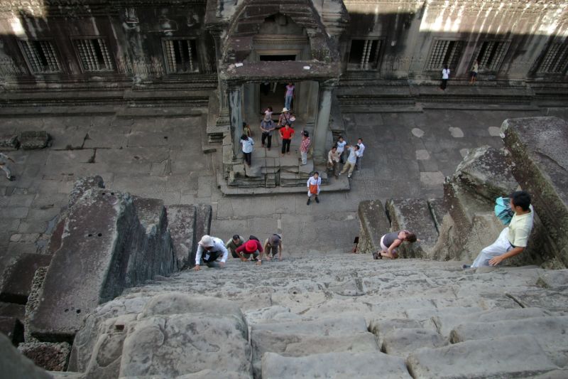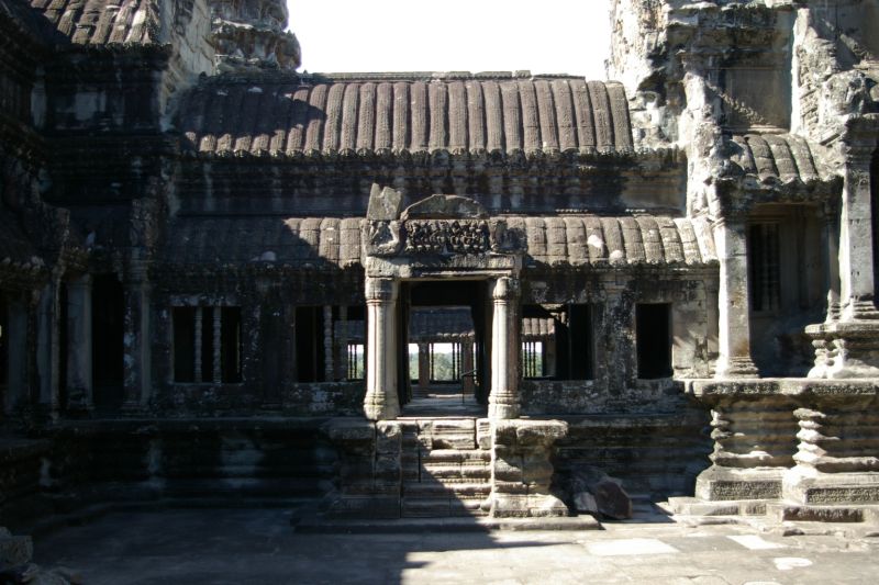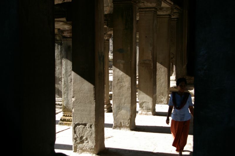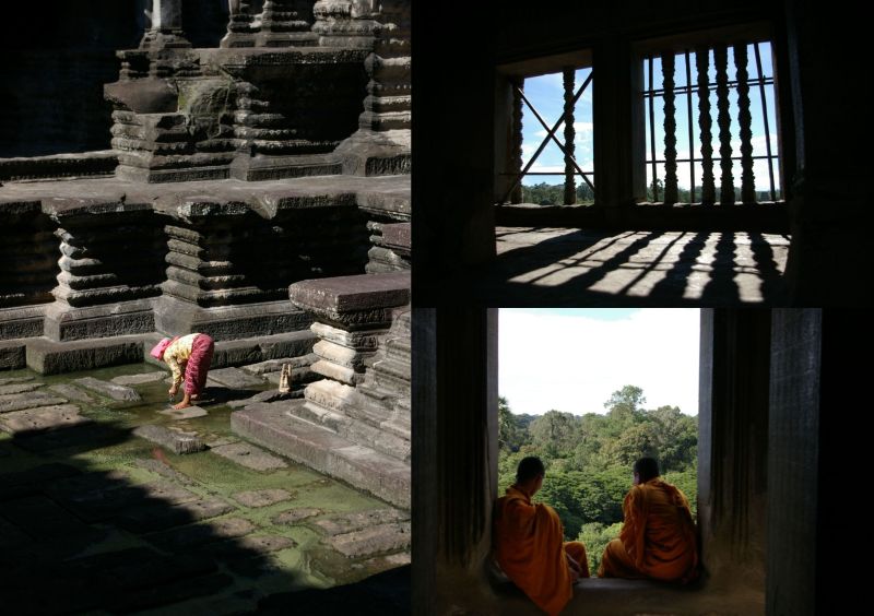 Drugi i trzeci poziom, wewnetrzne dziedzince byly kiedys wypelnione woda - to musial byc widok! Dzisiaj tylko troche.. wewnatrz sporo mnichow i tubylcow. Na szczescie to jest 'low season' wiec ilosc turystow nie przeszkadzala w zwiedzaniu.