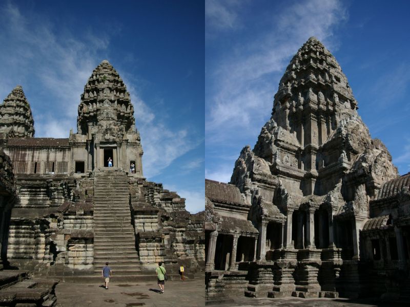 Glowna wieza Angkor - po prawej, i jedna z czterech pobocznych po lewej.
