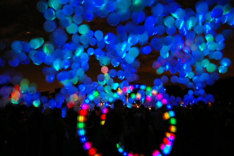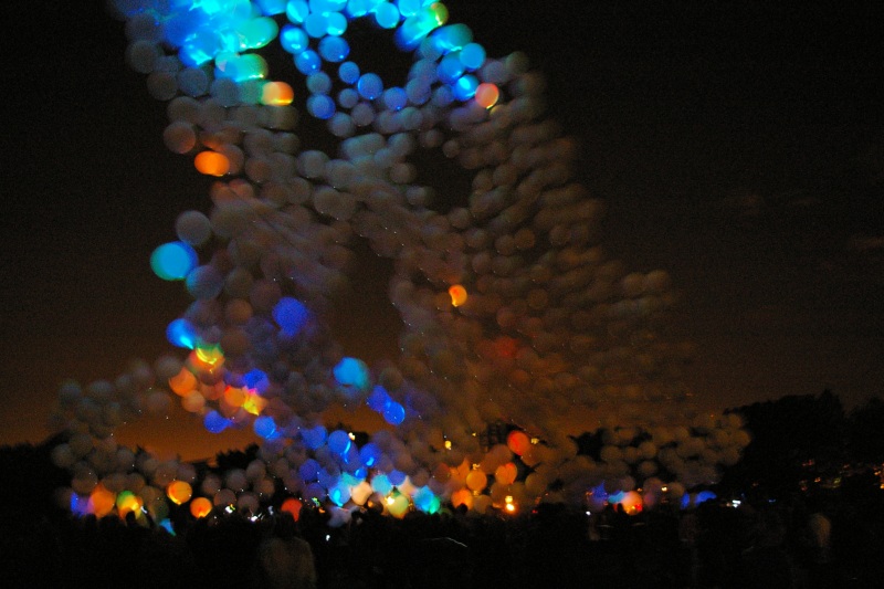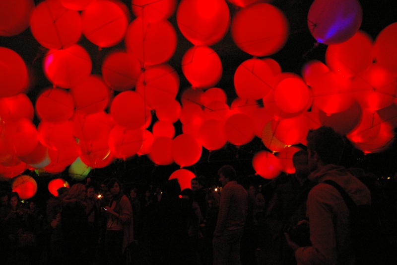 troche techniki.. kazdy balon mial cos takiego w srodku, niezalezna bateria i komunikacja przez RFID, lacznosc radiowa krotkiego zasiegu. Wlasciwie kazdy balon jest tutaj takim malym stworzonkiem, ktore gada z sasiadami za pomoca kolorow..