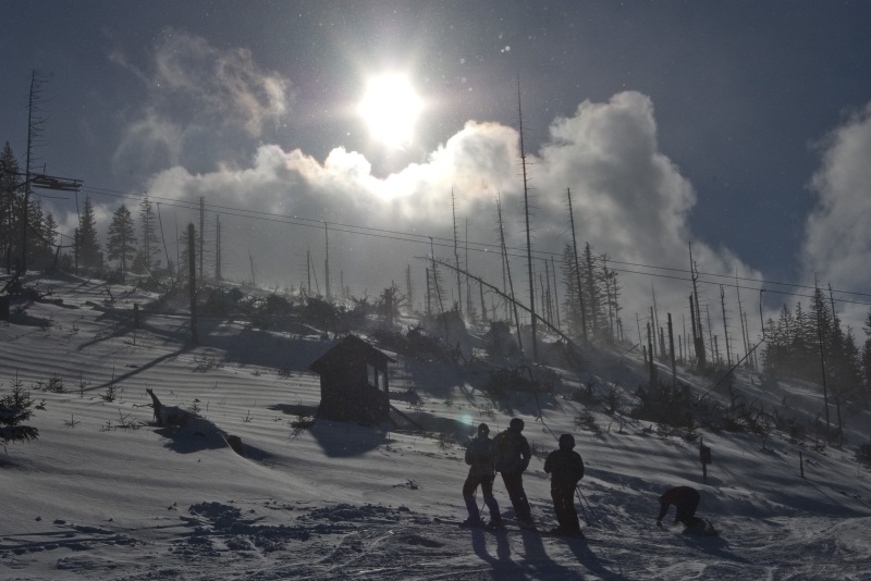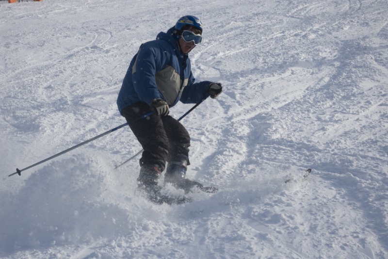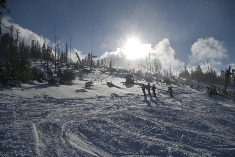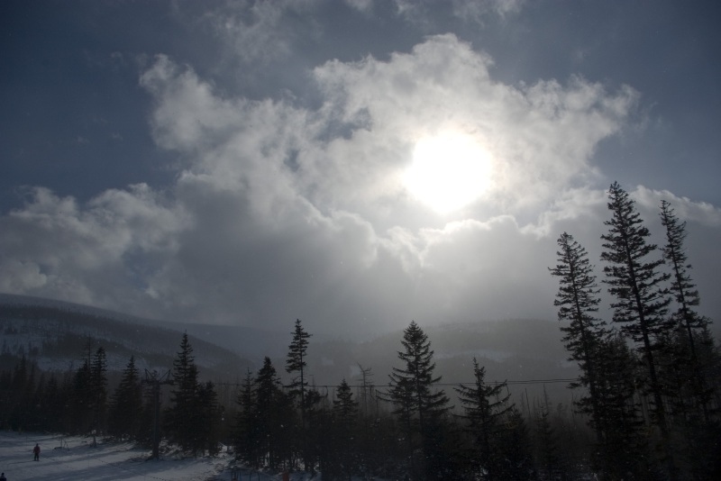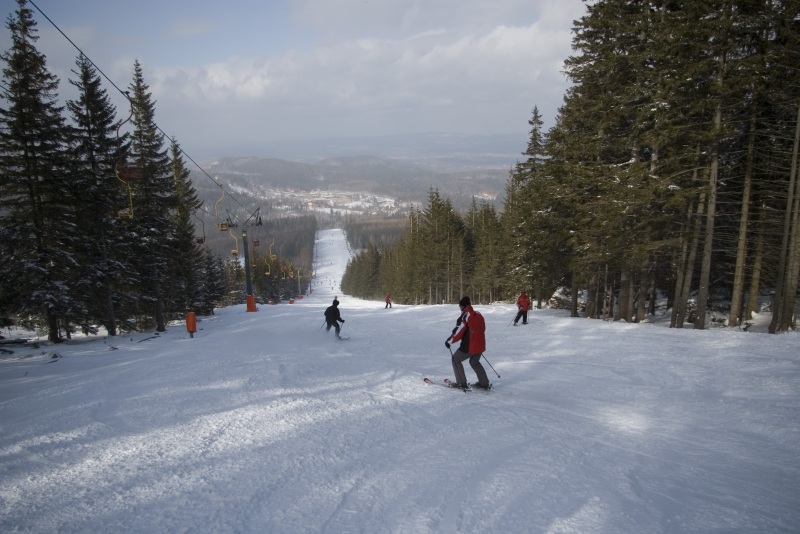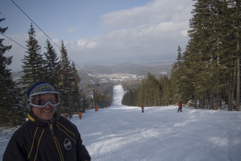 W sobotę to już zupełnie inna bajka.. udało mi sie razem z Lechem wybrać do Karpacza, gdzie nie-do-końca-wiadomo-dlaczego, prawie nie było ludzi. Fakt, że górna część wyciągu była zamknięta, bo trochę wiało, ale poniżej można było posmigać praktycznie bez stania w kolejce. Dwa dni później odkryłem jeszce dwie całkiem fajne trasy - Grosik i Złotówka, te które jadą od Strzechy Akademickiej i koło Białego Jaru. Masa świeżego śniegu, puchu, zero ludzi i slalomy pomiędzy drzewami. Zdecydowanie, odkrycie sezonu!