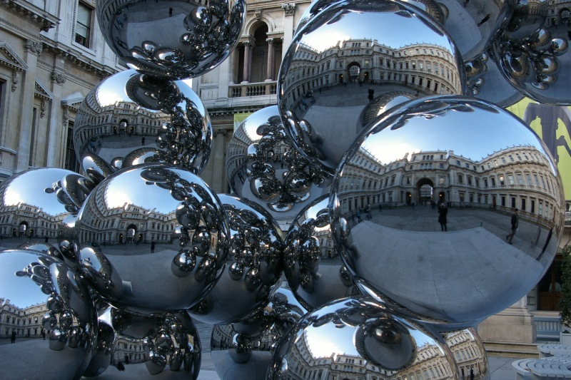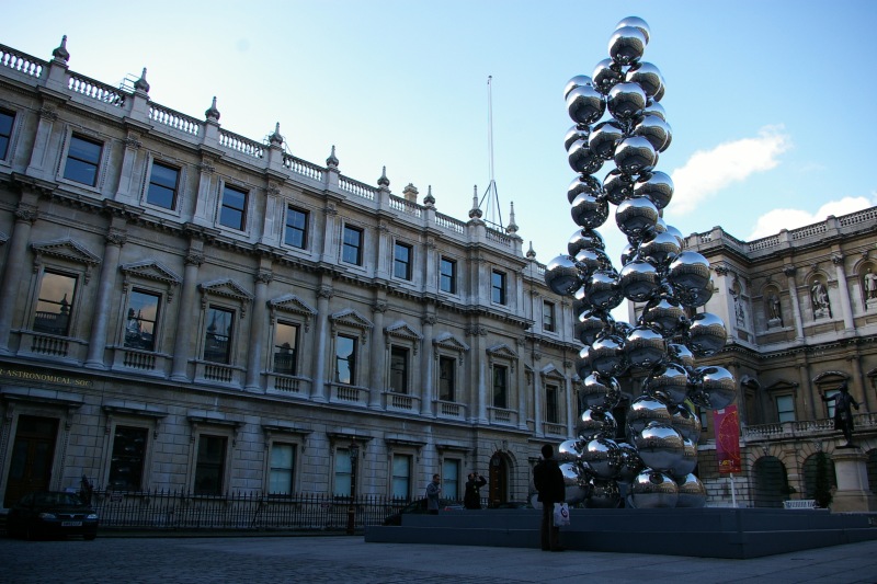W pierwszy weekend nowego dziesięciolecia trzeciego tysiąclecia weszliśmy przechadzką po jeszcze częściowo opustoszałym mieście.. niby przypadkiem, niby nie - odwiedziliśmy rzeźbę Anisha Kapoora, która ciągle jeszcze znajduje się na dziedzińcu przy Royal Academy of Arts (chociaż oficjalnie miało już tam jej nie być - widocznie za bardzo się podoba :)
