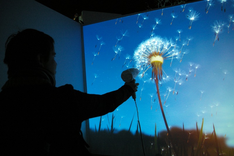 to za to dwie najbardziej czaderskie instalacje, głównie ze względu na szybkość reakcji.. rozdmuchiwanie dmuchawca 'suszarką' (a w rzeczywistości latarką na podczerwień), no i klasyczny ekran do malowania rękami. Ale zabawa :D