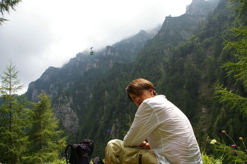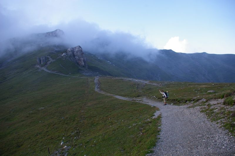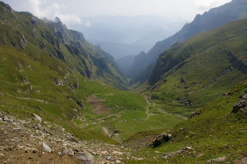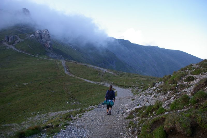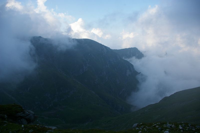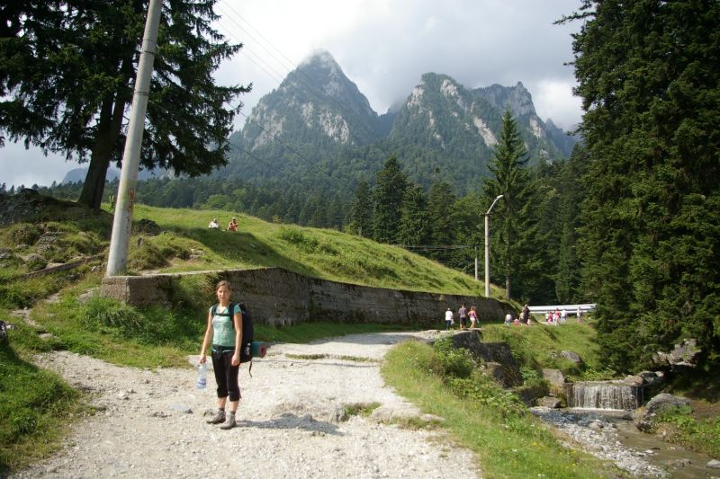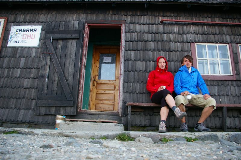 Z Braszowa po dłuższej i trudnej debacie decyzyjnej;-) pojechaliśmy wieczornym pociągiem do Sinaia.. po drodze dowiedzieliśmy się empirycznie, że pogłoski o magiczności Rumunii są zupełnie prawdziwe. Pociąg się zatrzymał w Busteni, i nie chciał jechać dalej.. po ponad godzinnym nieplanowanym postoju wyczytaliśmy w przewodniku, że Busteni jest najlepszą bazą wypadową w góry Bucegi. No i wio.. wysiadka, i zaczynamy szukanie noclegu. Po 30tu minutach znaleźliśmy się w czarodziejskim pensjonacie, gdzie spędziliśmy relaksującą noc (przy okazji zostałem okrzyczany przez tubylców, że mam kupić sobie górskie buty, bo trzeba mieć respekt do gór:). Oczywiście dostaliśmy też mnóstwo dobrych rad, no i konkretne bekonowe śniadanie :-) Po tej mini-przygodzie rozpoczęliśmy wędrówkę :