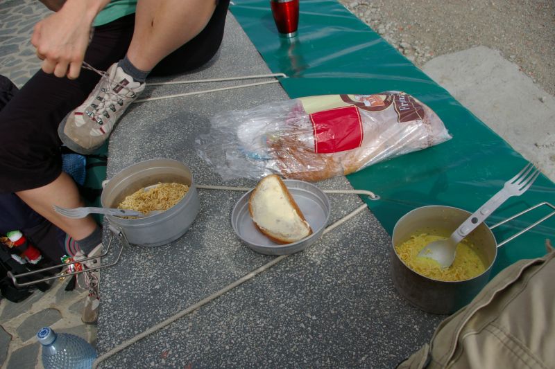 Po wspinaczce po skałach (ok 45-60 stopni nachylenia) dotarliśmy do schroniska (nie ma to jak dobra chińska zupka na pokrzepienie)
