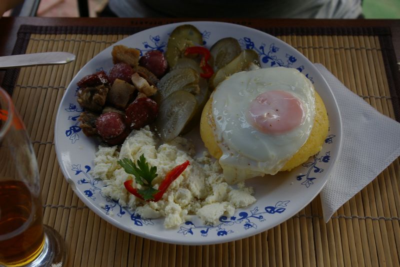 Tradycyjne jedzonko - mamałyga (kaszka ukryta pod jajkiem)